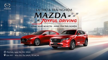 Ngày 06/04/2024, chương trình lái thử xe Mazda Joyful Driving sẽ được diễn ra tại sân M1 Khu đô thị Sala với sự kết hợp nhiều hoạt động trải nghiệm thú vị, cùng nhiều quà tặng và ưu đãi hấp dẫn dành cho khách hàng đến tham dự.